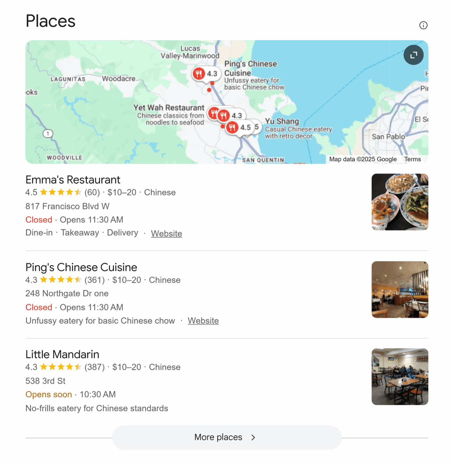 Sur Google Maps, les 3 premiers commerces captent la majorité des clics.