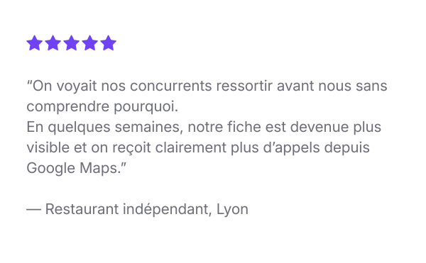Chaque jour sans optimisation renforce l’avance de vos concurrents sur Google Maps.