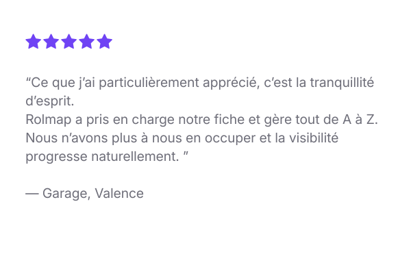 Vous n’avez rien à gérer. Rolmap s’occupe de l’optimisation, des avis et de l’activité Google pendant que vous vous concentrez sur votre business.